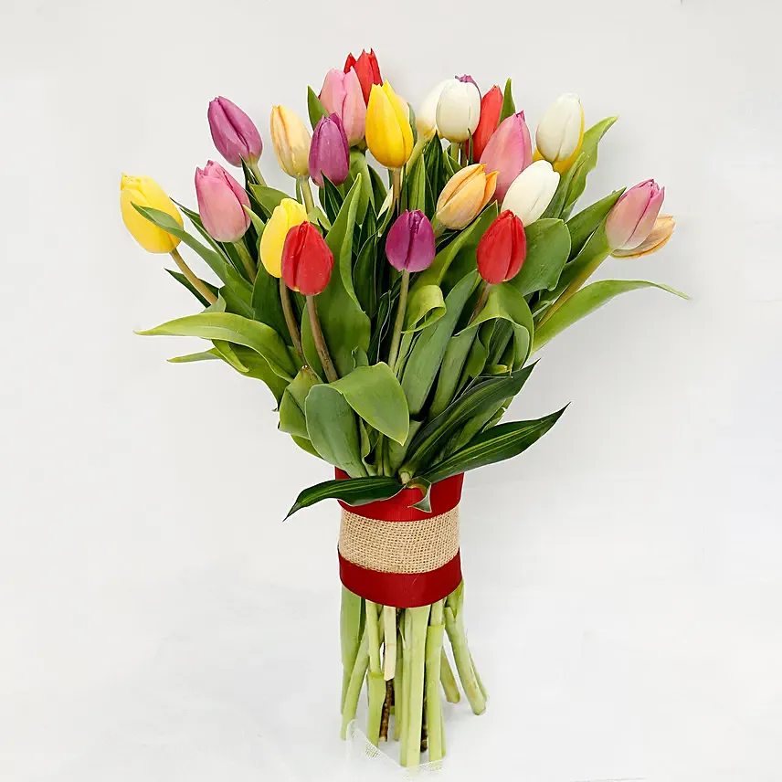 This mixed tulips bouquet is the perfect way to express your feelings to your loved ones.
