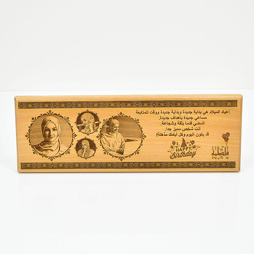 Birthday Wishes Photo n Arabic Text Wooden Plaque