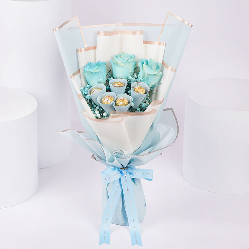 Blue Roses and Rochers Bouquet
