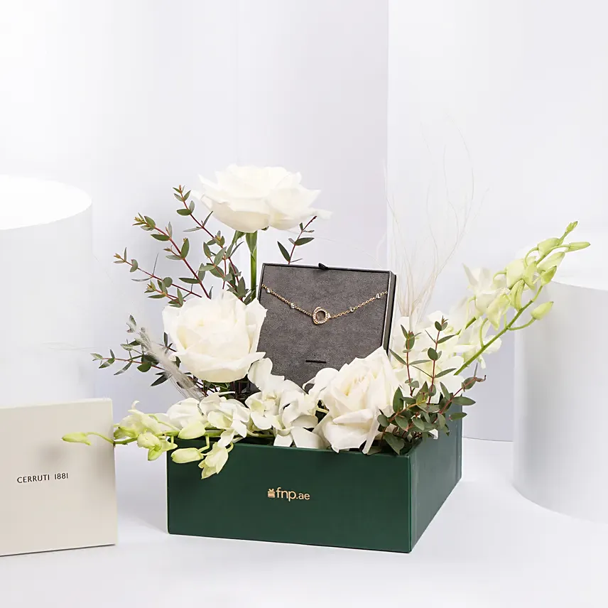 Surprise her with Giulia bracelet which showcases a sophisticated aesthetic. The triangular crystal-embedded charm, softened with curved corners, offers a bold yet elegant touch. The free-flowing design captures the confidence and grace of the Cerruti 1881 woman.