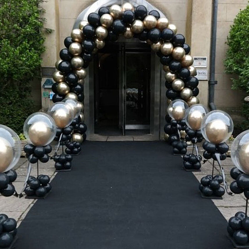 Gold N Black Balloon Arch and Stands Decoration