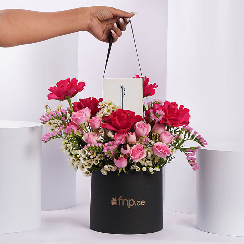 • Arranged Beautifully in a Black Round Blooming Box