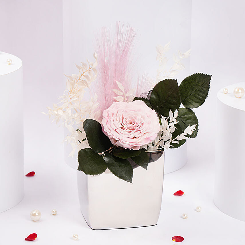 Large Pink Forever Rose in Premium Metal Vase