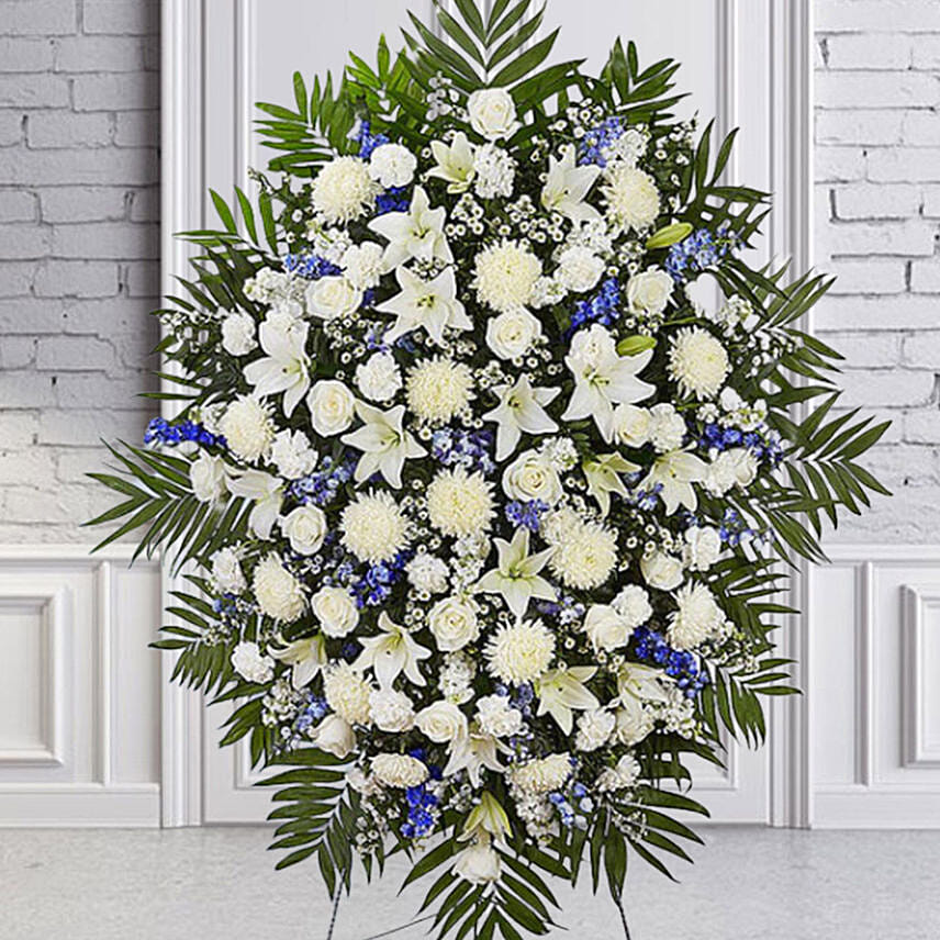 "The customer service was excellent and the floral arrangement stand was beautiful ,fragrance, large and eye catching. This was my second experience and I will definitely shop again. "