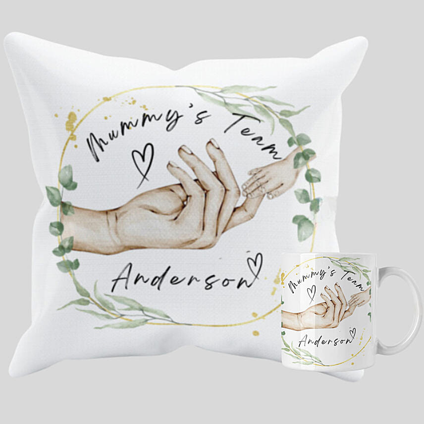 Mummy'S Team Personalised Names Cushion & Mug