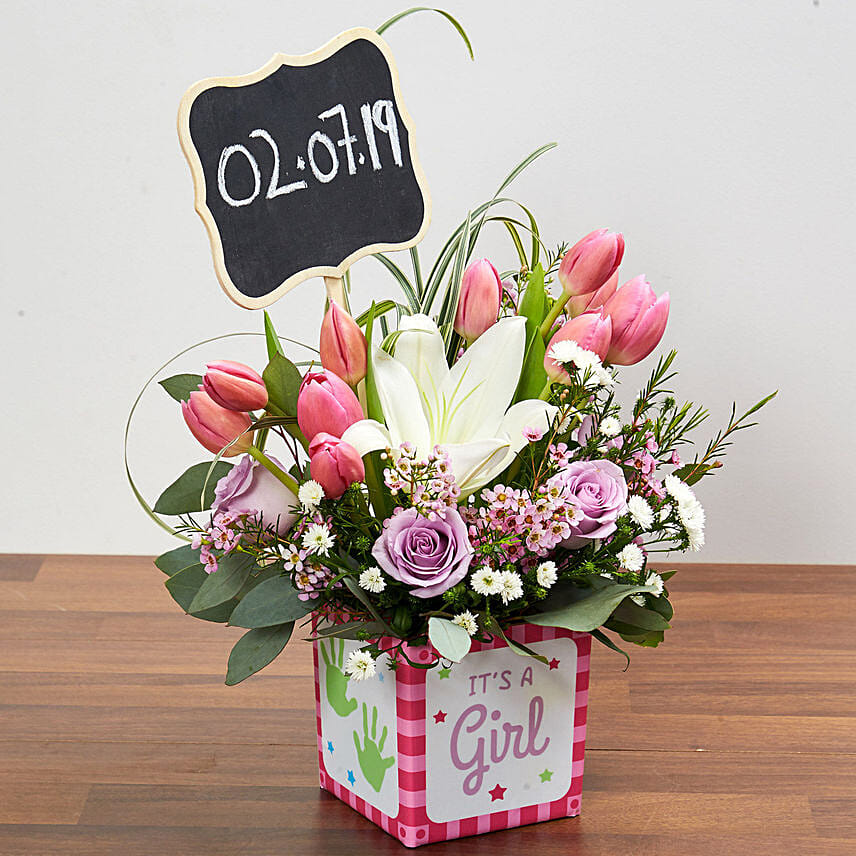 • It's a Girl Square Glass Vase- 12 x 12 cms