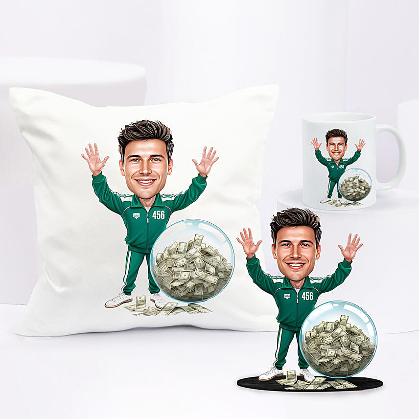 Personalised Caricature Style Green Tracksuit No 456 Gift Set