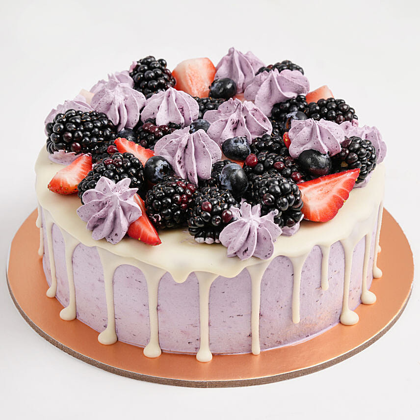 The perfect vanilla sponge, layered with berries infused cream cheese frosting. Topped with fresh berries