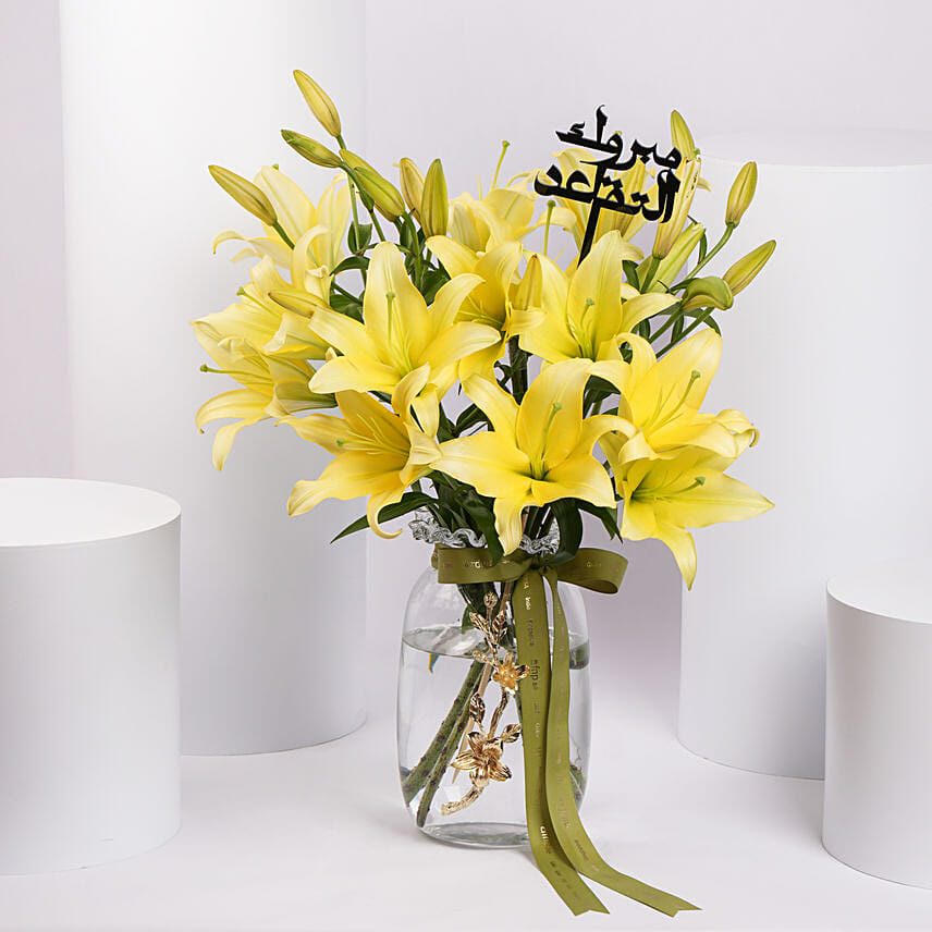 Yellow lillies refer to charm, elegance, purity, and peace. Taking a Lily for restoring happiness, positivity, and gratitude in home is a lovely idea to goof up the house-warming occasion. As a home decor item, you can put this vase arrangement of 6 Yellow Lily Asiatic in any corner and spice up the home space. So, surprise your loved ones with this unique gift.