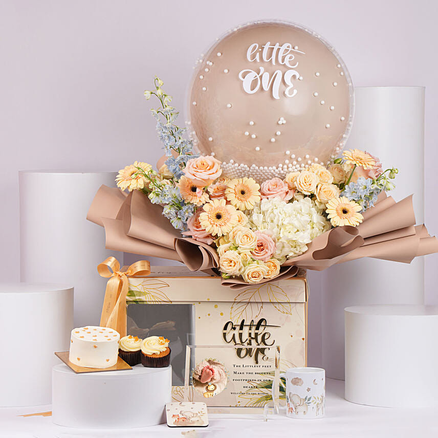• Features : Personalized “Little One” Balloon, Elegant Floral Design, and Thoughtful Keepsakes with Mono Cake for a Complete Gift Experience