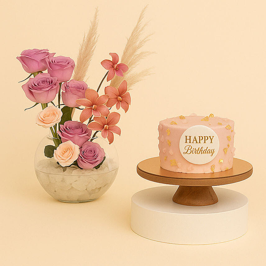Tulips and Roses with Birthday Cake