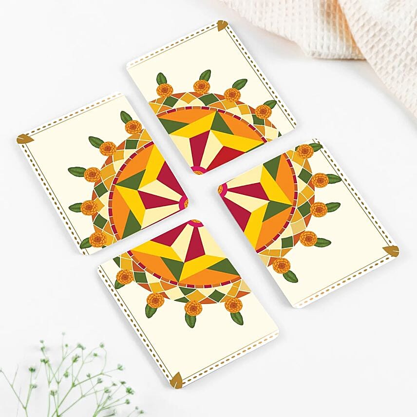 Brighten up any space with this vibrant Rangoli style fridge magnet set. Crafted from durable MDF these four magnets come together to form a stunning Rangoli design when placed side by side. Perfect for adding a touch of traditional charm to your kitchen or workspace they make a thoughtful gift for family or friends. The set brings festive cheer and colourful elegance making it a unique and stylish way to celebrate special occasions or simply brighten someones day.