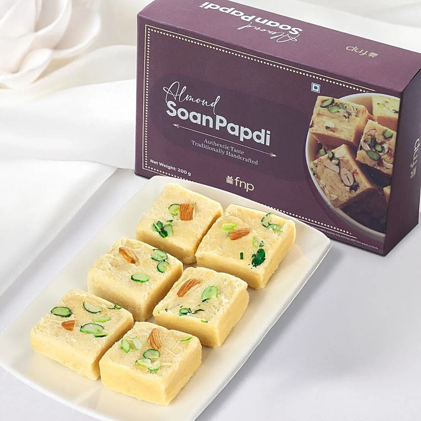 • Savour the flaky, melt-in-the-mouth goodness of FNP’s Almond Soan Papdi, a beloved classic with a rich twist. Crafted from fine ingredients and delicately infused with the crunch of premium almonds, each bite offers a perfect balance of sweetness and texture. Ideal for festive celebrations, heartfelt gifting, or treating someone special, this traditional sweet carries the warmth of Indian hospitality. Beautifully packed for an elegant presentation, it’s a thoughtful way to share joy, love, and togetherness, making every occasion more memorable with its irresistible taste and nostalgic charm.Ask ChatGPT