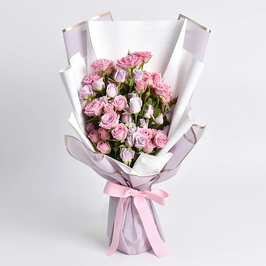 Purple and Pink Spray Roses Bunch