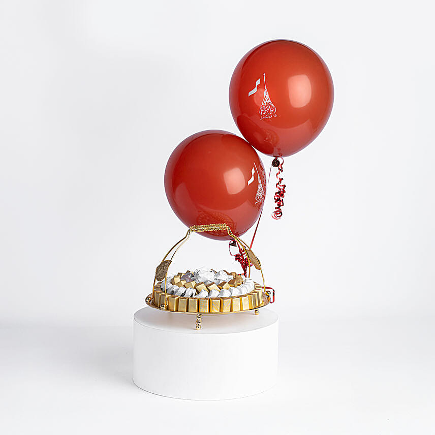 Assorted Chocolates Tray with National Day Balloons