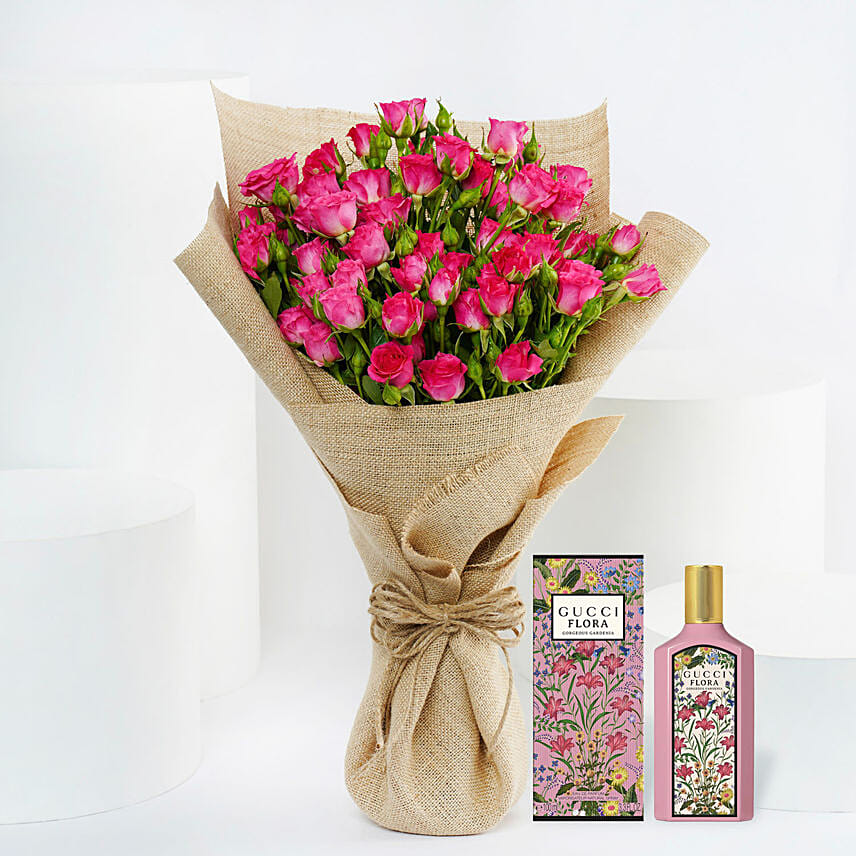 • 10 Dark Pink Spray Roses