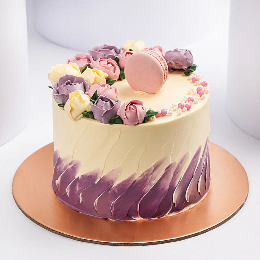 Flower And Macaroon Chocolate Cake