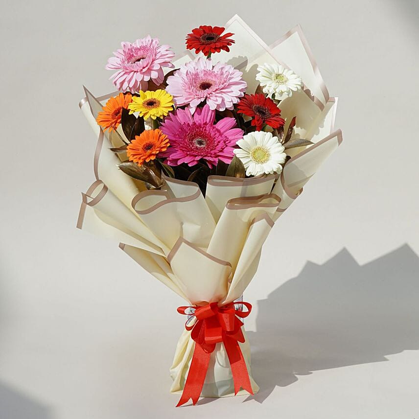 • A bright and colourful flower bunch to send ‘Good Vibes’. This rainbow-inspired arrangement will flourish for days to come, keeping the happy aura in the home alive. The flowers are handpicked and arranged with perfection to make sure they look vibrant at all times.