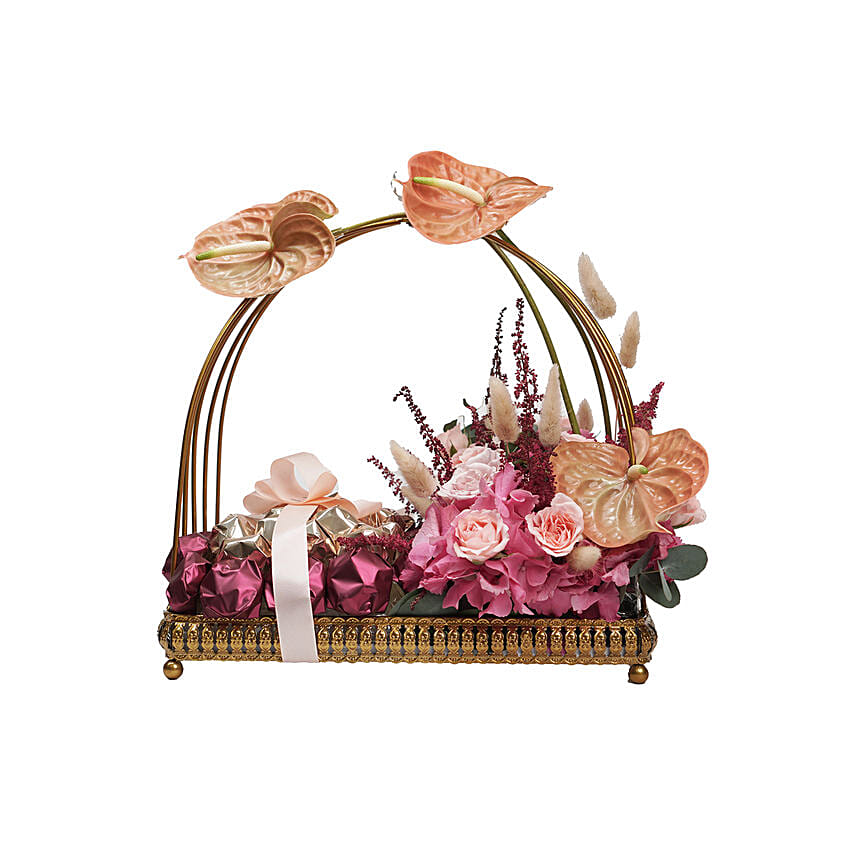 Mixed Flowers & Chocolates Dome Shaped Cage