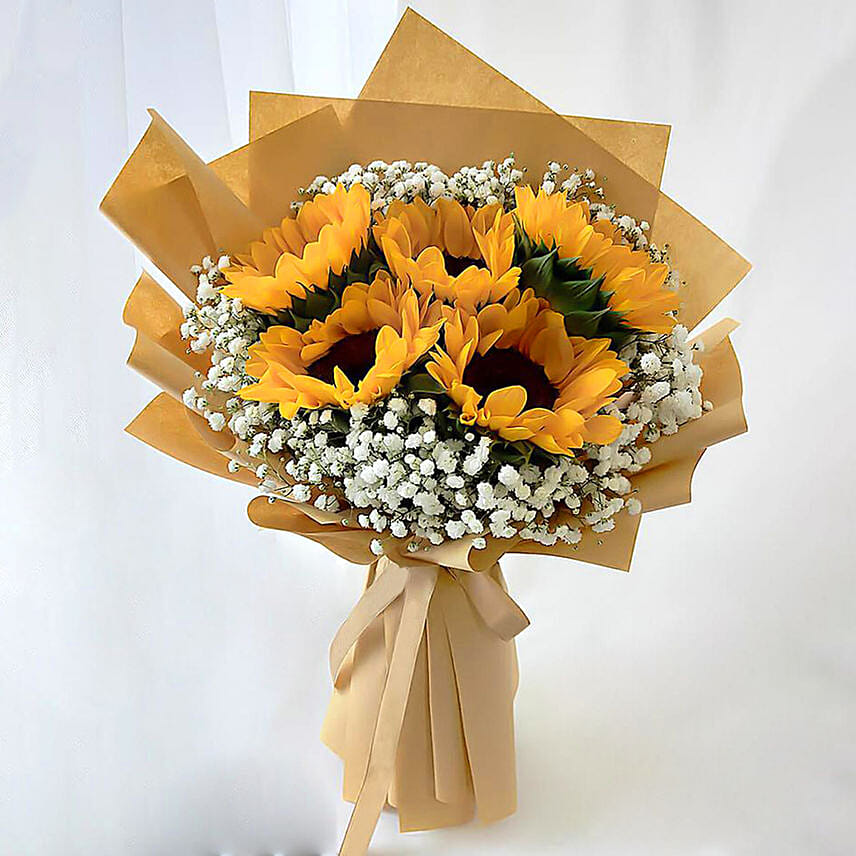 Ravishing Sunflowers Bouquet Beautifully Tied