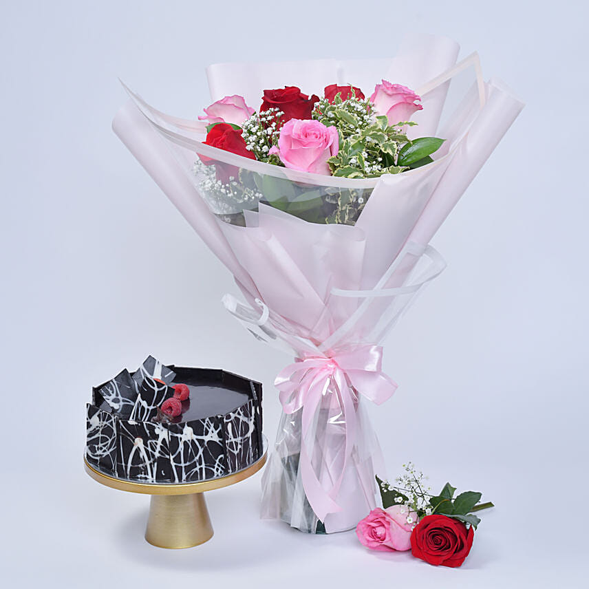 Rose Trio with Chocolate Cake