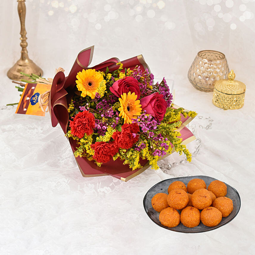 Sparks of Joy Diwali Flower Bouquet and Motichoor Laddoo