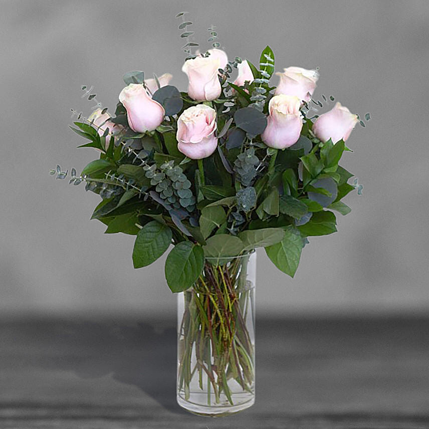 12 Sweet Pink Roses Glass Vase Arrangement