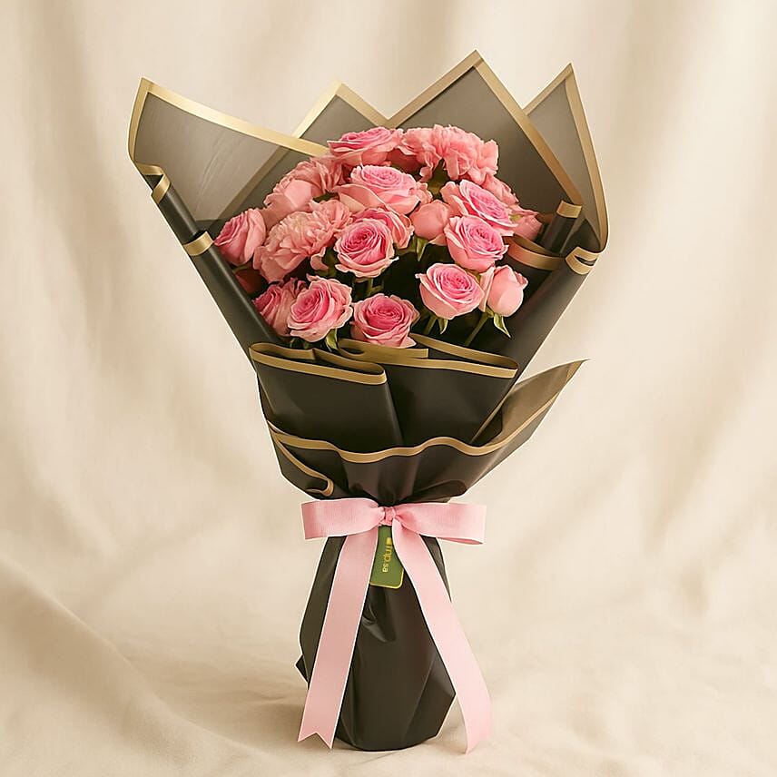 Delight your loved one with this elegant touch of pink carnations bouquet, elegantly arranged and expeltry wrapped, making it the perfect gift for love and romance.