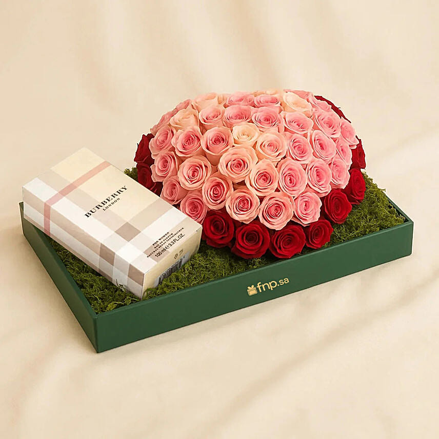 Celebrate love with a love basket of perfume and roses. This basket has been carefully curated to make the perfect gift for Mother's Day, anniversary, birthday or any other special occasion. The basket contains roses Zahia and the famous Burberry London women's perfume, making it an elegant and aromatic expression of emotions.