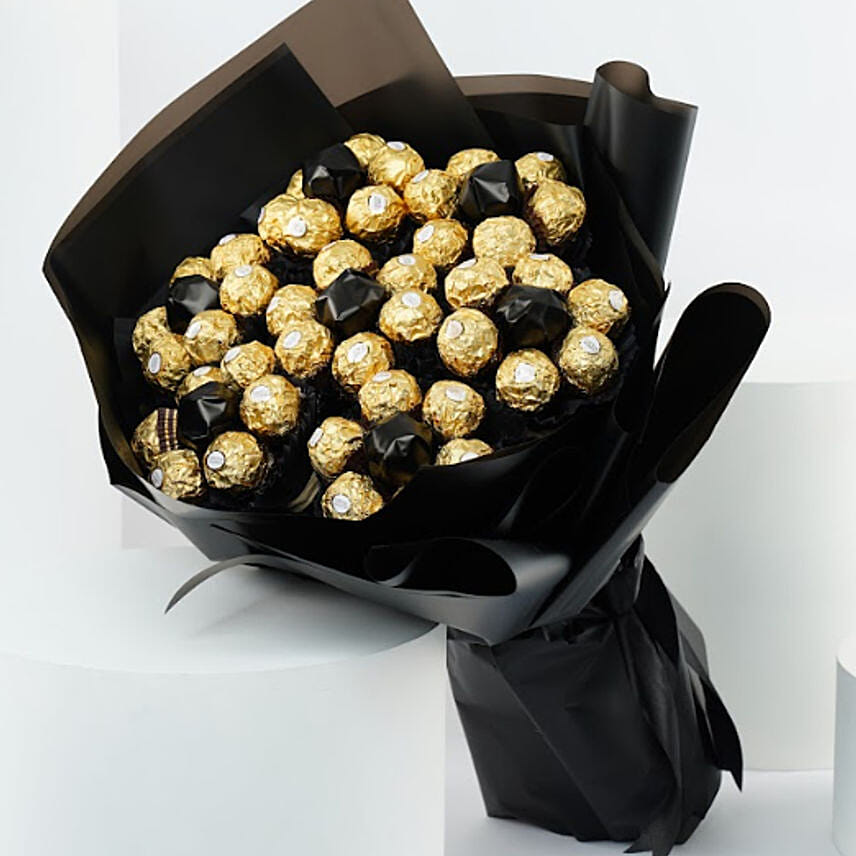 Surprise your loved ones with a luxurious Ferrero Rocher bouquet. This sophisticated bouquet features 42 Ferrero Rocher chocolates elegantly arranged with premium paper wrapping and a decorative ribbon, making it the perfect gift for special occasions.