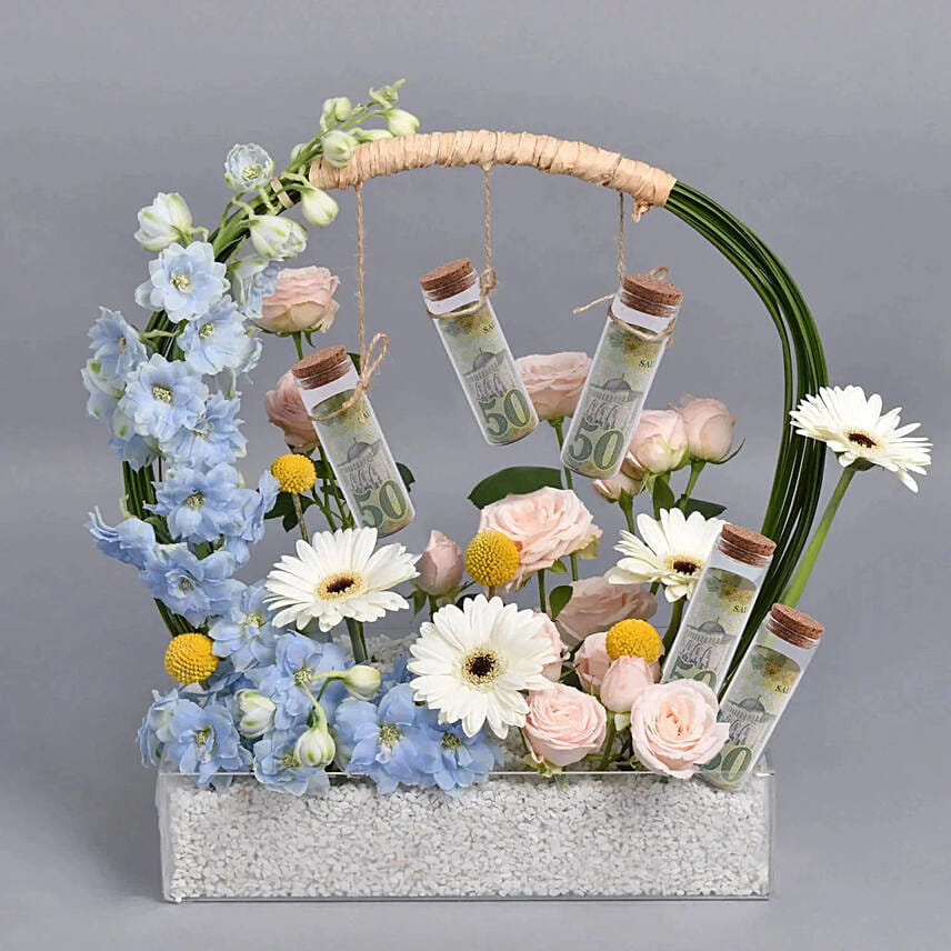 • Contains 250 Saudi riyals distributed in 5 glass tubes