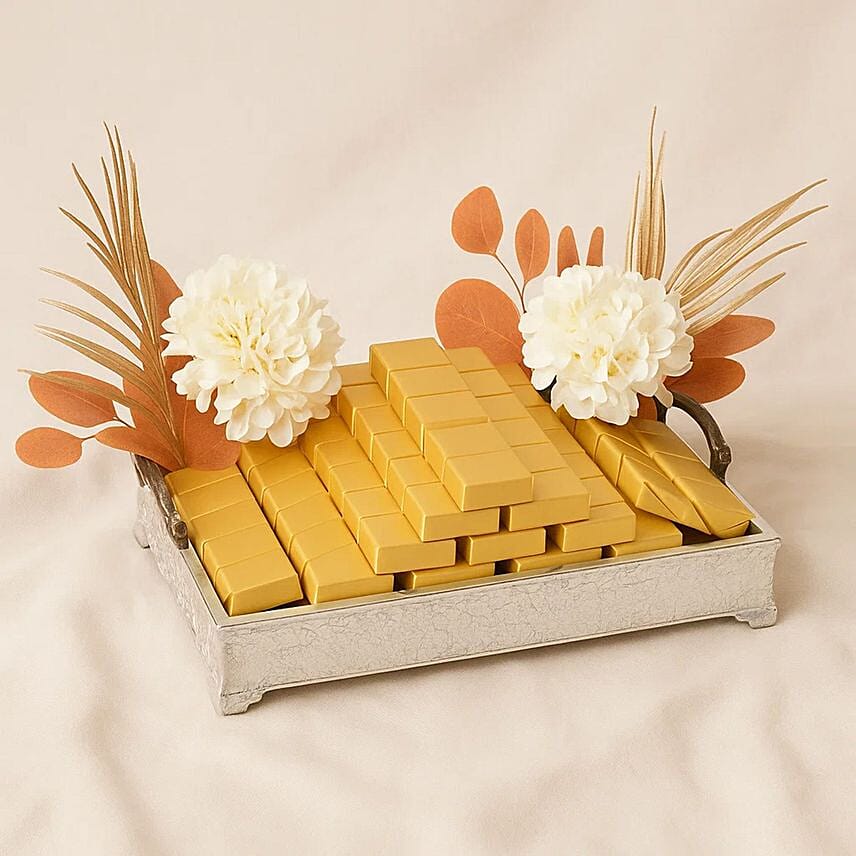Express your feelings in a sophisticated way with this luxurious chocolate and rose tray. It features approximately 57 premium chocolates with faux flowers in soft colors, elegantly arranged on a luxurious long wooden tray. Perfect for romantic occasions, anniversaries, Valentine s Day, birthdays, or to express appreciation for someone special.