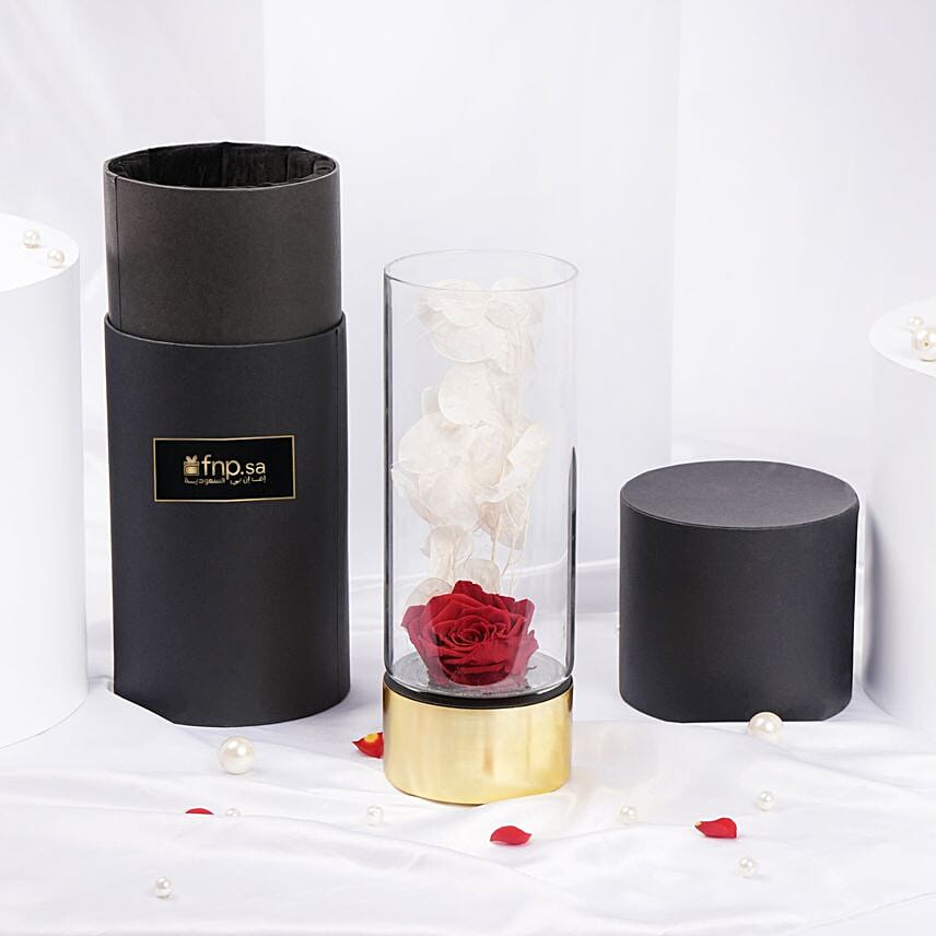 p styledirection ltr text-align leftA red rose preserved in an ebony vase is a wonderful symbol of eternal love. The perfect addition to add a touch of timeless elegance for Valentines Day, anniversaries or special occasions.p p styledirection ltr text-align leftstrongProduct Detailsstrongp ul li styledirection ltr text-align leftRed Rose Perennialli li styledirection ltr text-align leftDry Insertsli li styledirection ltr text-align leftBlack Ebony Box with Medium Vase 33x13 cmli ul