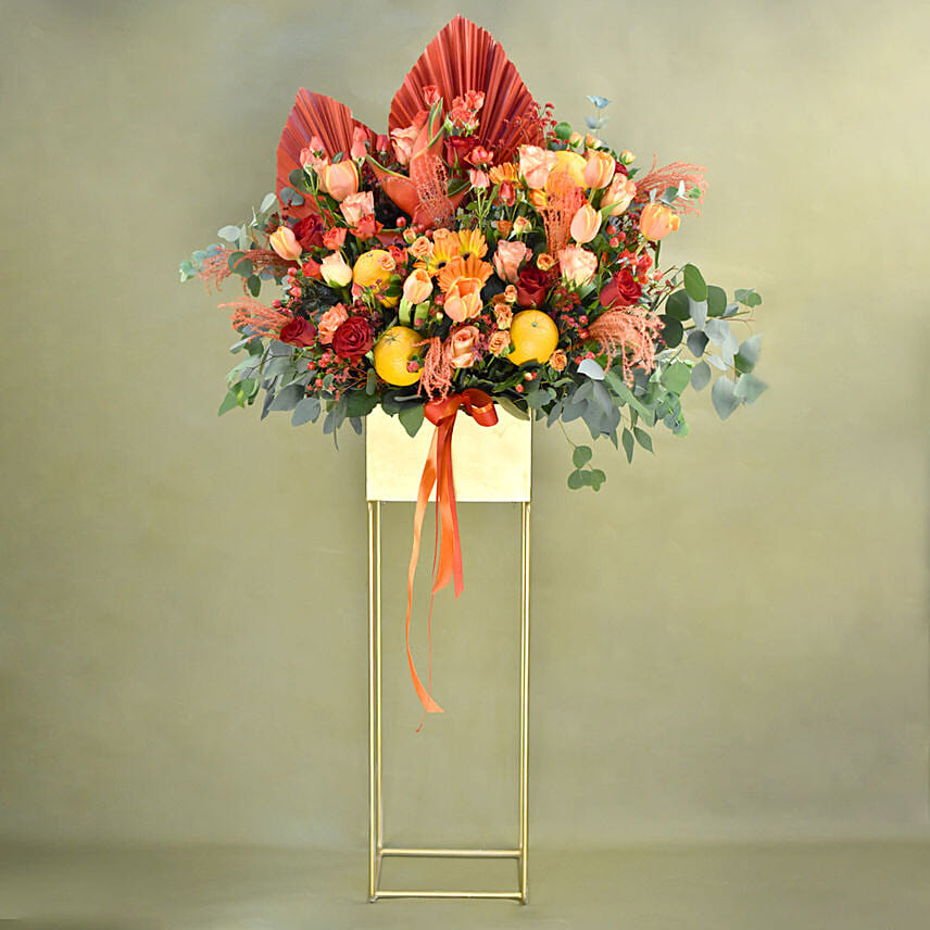 Heavenly Mixed Flowers Golden Stand
