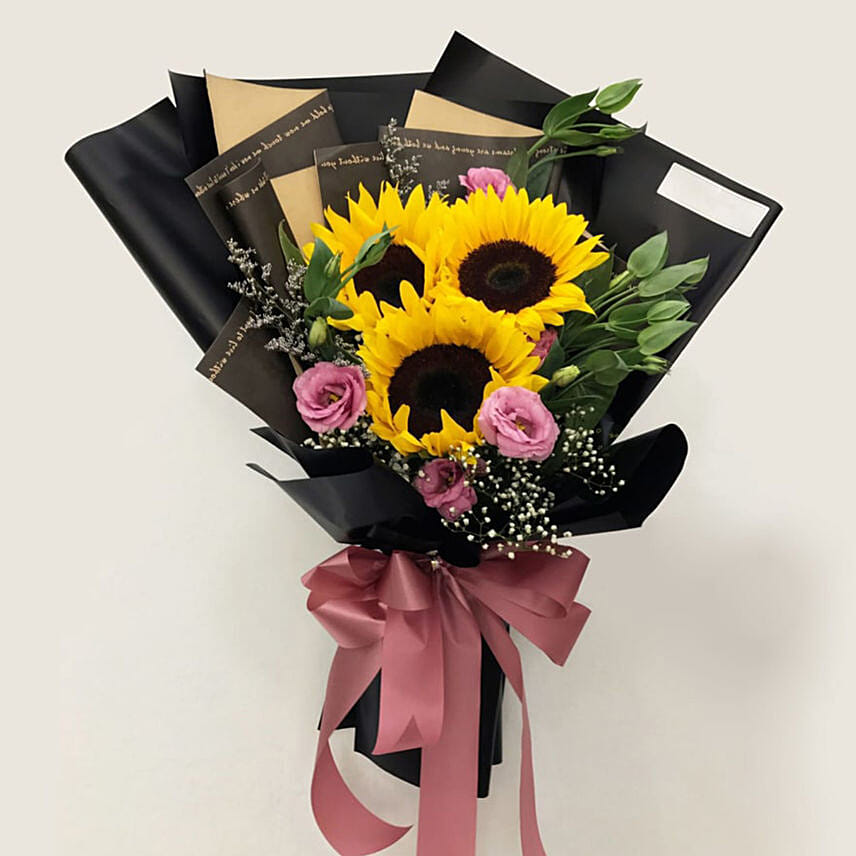 Sunflower N Lisianthus Beautifully Wrapped Bouquet